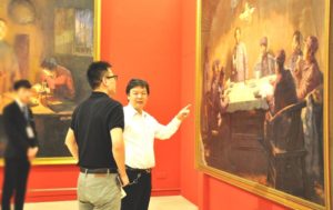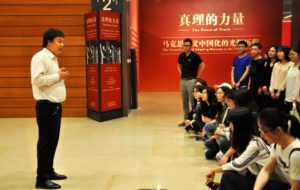 在第一展厅,同学们仔细阅览了一个接一个展柜,一份又一份文献,不放过每件展品、每处细节,并就许多展品同学生们聊起了马克思主义思想产生背后波澜壮阔的斗争历程,带领大家走近马克思,走进马克思的精神世界,领悟马克思号召大家追求的每个人自由而全面发展的美好愿望。参观至第二展厅“马克思主义中国化的光辉历程”时,大家一致认为,马克思主义在中国的成功,源于中国共产党坚持以马克思主义为指导,带领全国各族人民走出了一条符合中国国情的特色社会主义道路的成功。在第三展厅参观美术作品展览时,米良书记亲切地向大家讲解了画面呈现的许多历史事件背后的伟大意义,大家纷纷表示看到这些作品就仿佛能穿越时空与他进行交流,更加深切地感悟到了马克思矢志不渝追求真理的崇高信仰。