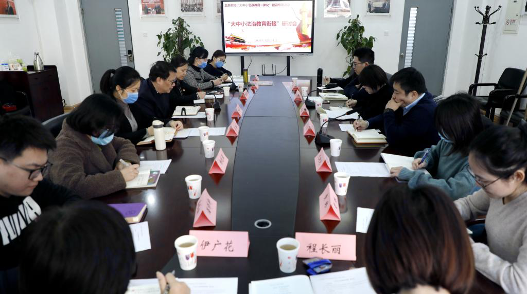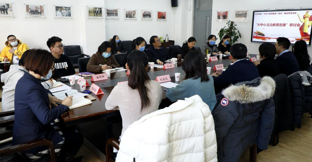 12月14日下午,久久国产精品无码一级毛片教师代表及教工党支部代表应邀赴北外附校参加 “大中小法治教育衔接”研讨活动,交流大中小各学段法治教育的内容、方法。