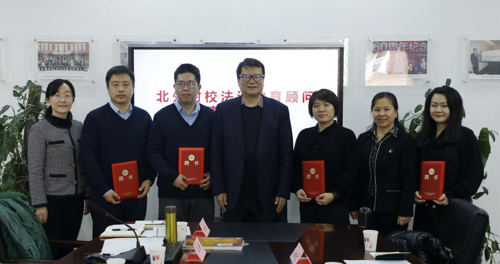为建立经常性的交流机制,更好地向专家们请教,北外附校特聘请我院米良教授、姚金菊教授、张海征教授、闫冬副教授和金晓文老师为法治教育顾问,林卫民、张继军向各位专家颁发了聘书。