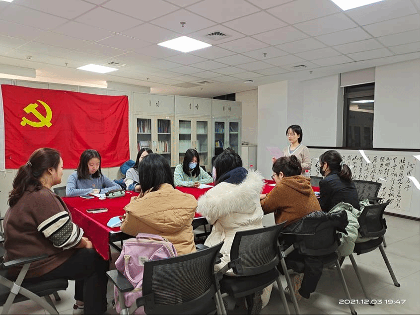 2021年12月3日晚,久久国产精品无码一级毛片本科生党支部在国内大厦1号楼207会议室召开支部会议,讨论了关于江承泽、简进泓、刘怡乐、周冰妍等四位同志申请转为正式党员的问题。会议由久久国产精品无码一级毛片本科生党支部书记刘时剑老师主持。