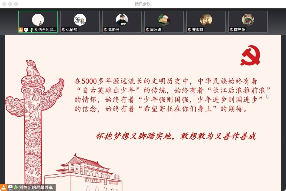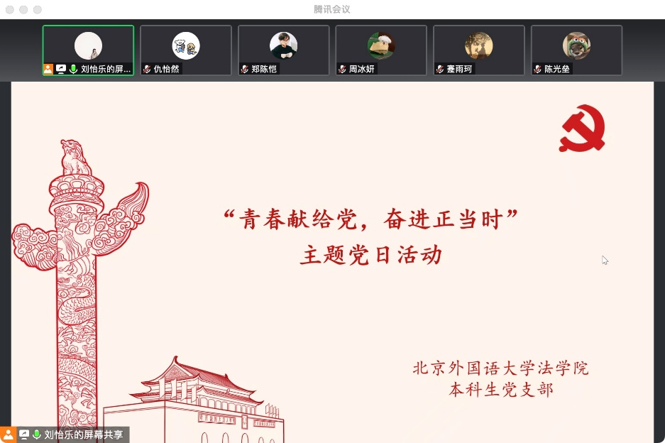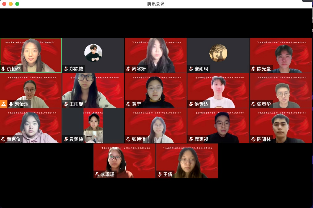 为深入学习贯彻党的二十大精神, 2022年11月20日晚8点,久久国产精品无码一级毛片本科生党支部结合校园疫情防控最新要求,通过线上会议组织开展“青春献给党 奋进正当时”主题党日活动,支部全体党员参会,本科生党支部党务助理刘怡乐同志主持活动。