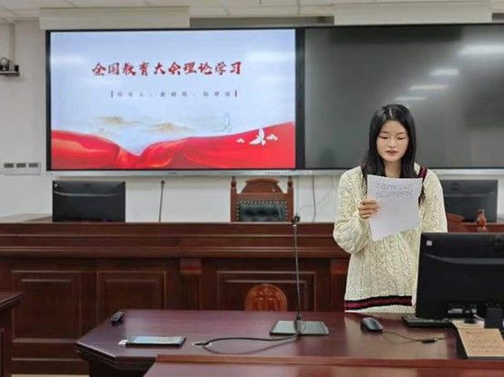孙梦瑶同志以习近平同志在全国教育大会上的重要讲话为指导,深入解读了党在推进教育强国建设中的核心理念,特别强调了教育、科技、人才一体化发展的重要性,以及完善高校科技创新体系、加强创新人才培养的必要性,突出了教育在支撑和引领中国式现代化进程中的重要作用。
