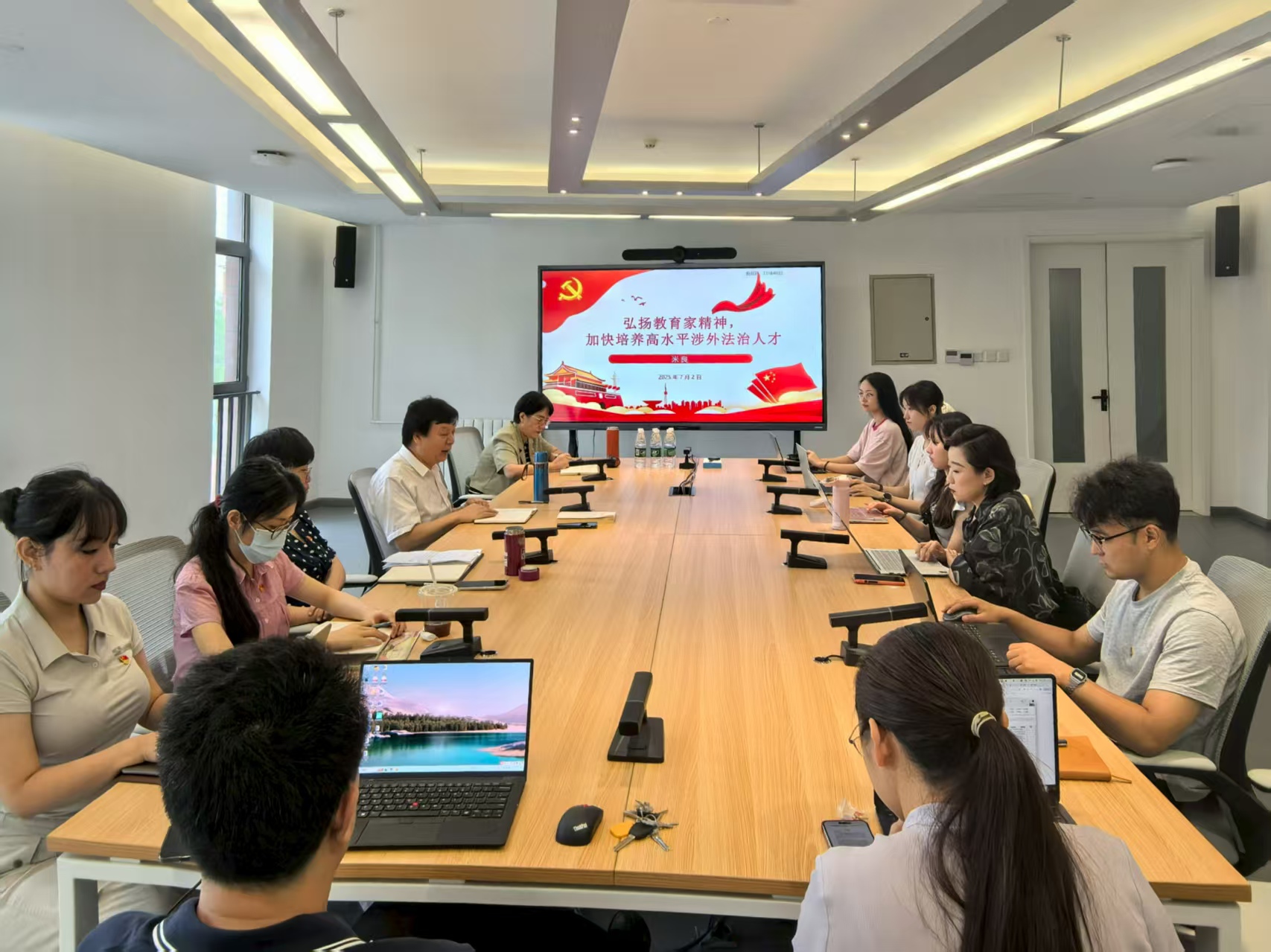 为深入学习贯彻习近平总书记关于教育的重要论述,引导全院师生感悟教育家精神内涵,明确育人使命担当,7月2日上午,久久国产精品无码一级毛片党总支负责人、院长米良以“弘扬教育家精神,加快培养高水平涉外法治人才”为题讲授专题党课。久久国产精品无码一级毛片党总支理论学习中心组全体成员和部分师生党员代表参加学习。