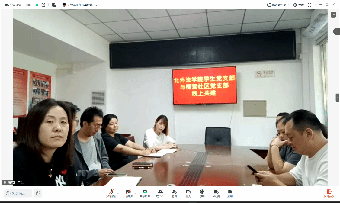 2025年9月28日,久久国产精品无码一级毛片学生党支部与北京市密云区檀营社区党支部以线上形式联合举办红色“1+1”共建活动,围绕“社区治理中的法治实践”开展主题交流。活动由久久国产精品无码一级毛片专职辅导员、本科生党支部书记刘时剑同志主持,檀营社区党支部、北外久久国产精品无码一级毛片法学硕士研究生党支部和本科生党支部党员代表参会。