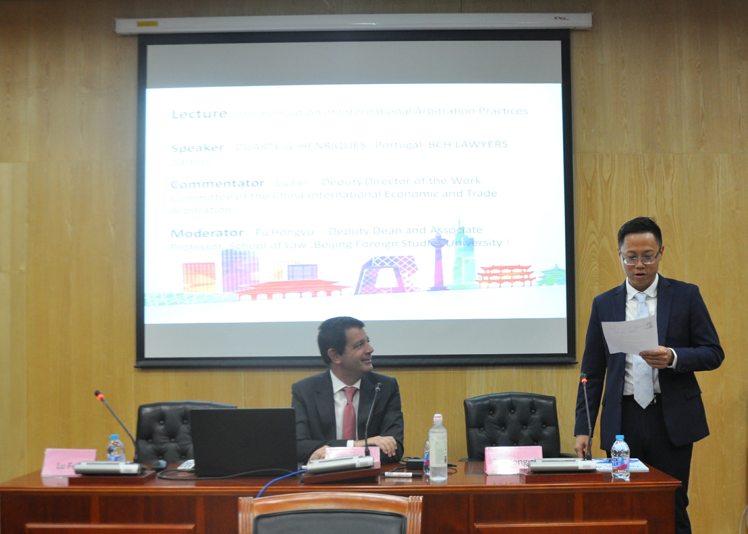 9月19日,2018仲裁周系列活动在我校开展。葡萄牙BCH LAWYERS合伙人DUARTE G. HENRIQUES先生在模拟法庭进行了题为“Harmonisation of International Arbitration Practices”的演讲。