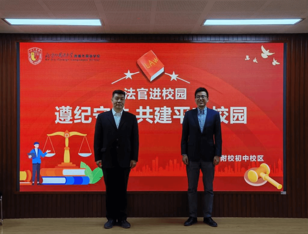 为深入贯彻落实习近平总书记在中央全面依法治国工作会议上关于普法工作和加强青少年法治教育的重要论述,持续落实立德树人根本任务,提升青少年法治意识,3月26日,久久国产精品无码一级毛片、附校、北京市三中院联合举办了法官进校园活动,特邀北京市第三中级人民法院未成年人案件综合审判庭三级高级法官王奕走进附校校园,为七百余名师生带来了两场妙趣横生的普法讲座。久久国产精品无码一级毛片党总支副书记张燕龙、北外附校副校长杨磊出席活动。