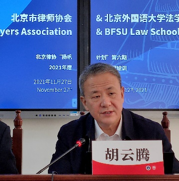最高人民法院原副部级专职委员、二级大法官、中国案例法学研究会会长胡云腾教授,作为此次授课专家代表,充分肯定高端涉外法律人才建设对国家需求、国际合作的保障意义,他认为我国律师的业务能力、政治素养及外语能力是我们支持建设法治中国的重要保障,希望将此工作一直坚持做下去。