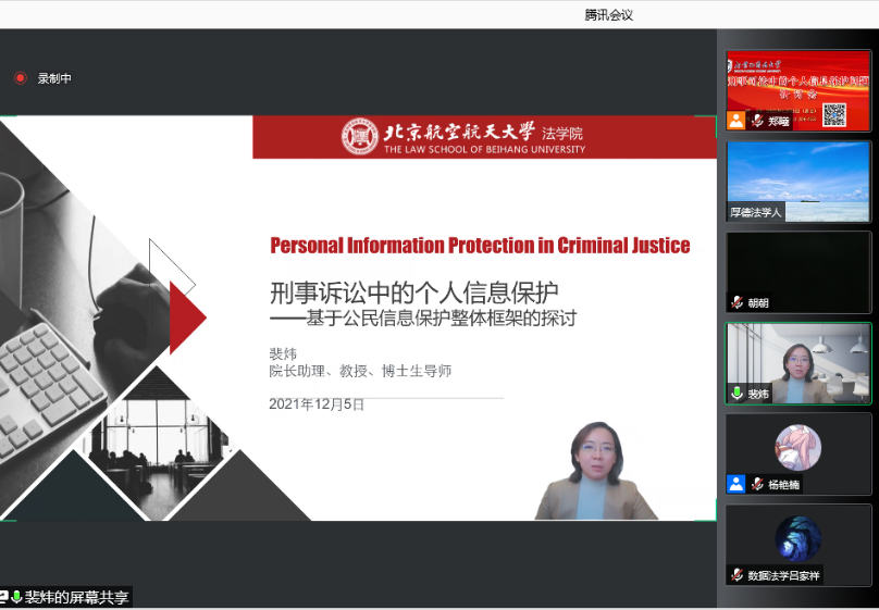 2021年12月5日,北京外国语大学久久国产精品无码一级毛片主办的“刑事司法中的个人信息保护问题研究”研讨会在线上线下同步举行。