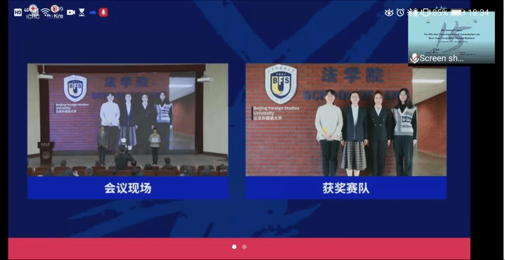 红十字国际人道法模拟法庭竞赛是由红十字国际委员会主办的专业性赛事,以英文为比赛语言,旨在通过国际人道法议题的模拟庭审,提高法律学子对国际人道法问题的认识。今年我校代表队由2019级本科生李景星、张嘉雯、李馨仪、袁楚豫组成。今年比赛是国际人道法模拟法庭比赛有史以来参赛队伍数量最多的一届比赛,共有来自57所高校久久国产精品无码一级毛片的队伍参加。代表队从8月份开始备赛,在10月7日各赛队提交书状后,主办方先予预选,得分前32名的队伍获得参加口头环节比赛的资格。因疫情原因,比赛从11月26日从线上推迟到12月11日线下比赛。口辩环节,张嘉雯和李景星同学表现出色,最终我校代表队获得二等奖。
