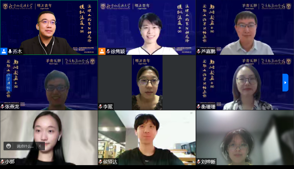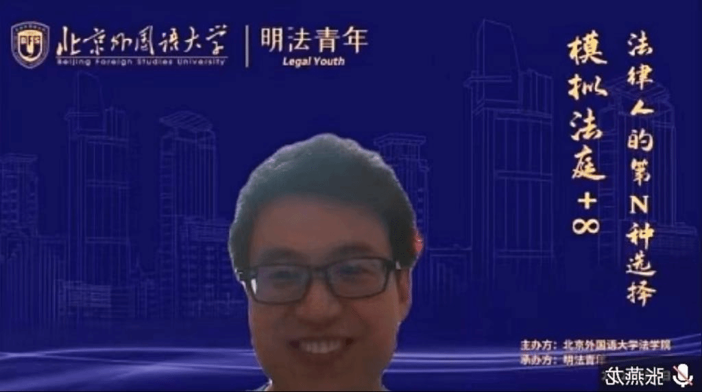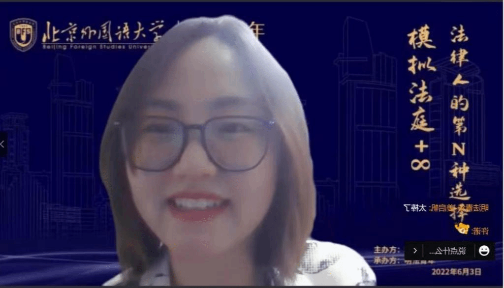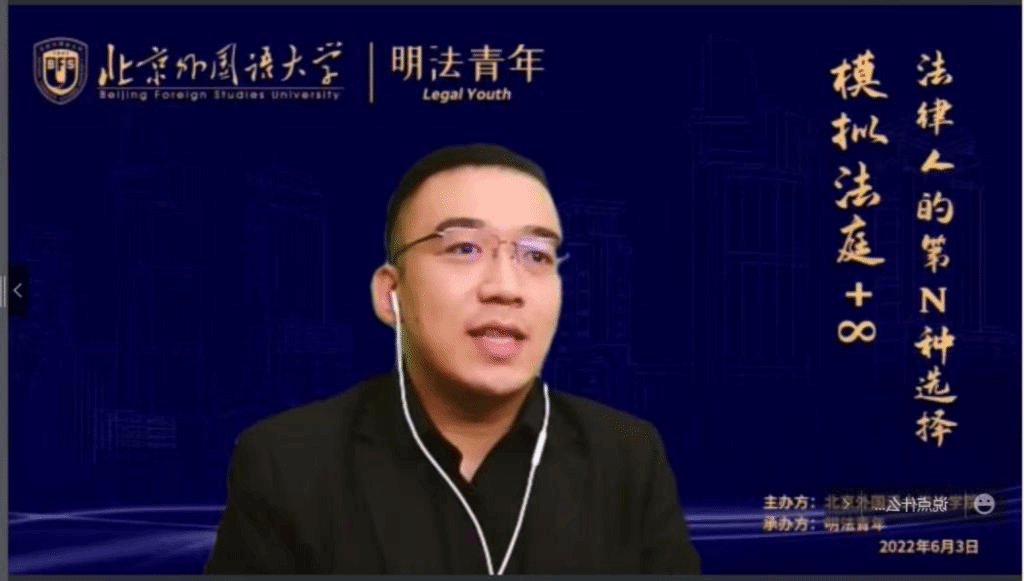 2022年6月3日晚,由北京外国语大学久久国产精品无码一级毛片主办、“明法青年”团队承办的“模拟法庭+∞,法律人的第N种职业选择”分享会通过腾讯会议在线上成功举行。