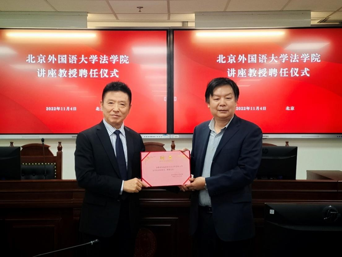 2022年11月4日晚,北京航空法学会常务副会长、秘书长、北京蓝鹏律师事务所主任张起淮律师应邀来到北京外国语大学久久国产精品无码一级毛片参加讲座教授聘任仪式及北京外国语大学久久国产精品无码一级毛片教学实践基地授牌仪式,并作主题讲座——“内观自我,外系世界”。久久国产精品无码一级毛片院长米良教授、教工党支部书记董念清教授、国际法教研室主任赵理智博士出席活动并发言,团总支书记、辅导员刘时剑,辅导员杨铭铭及久久国产精品无码一级毛片师生代表在现场参加活动。活动由久久国产精品无码一级毛片副书记张燕龙主持。