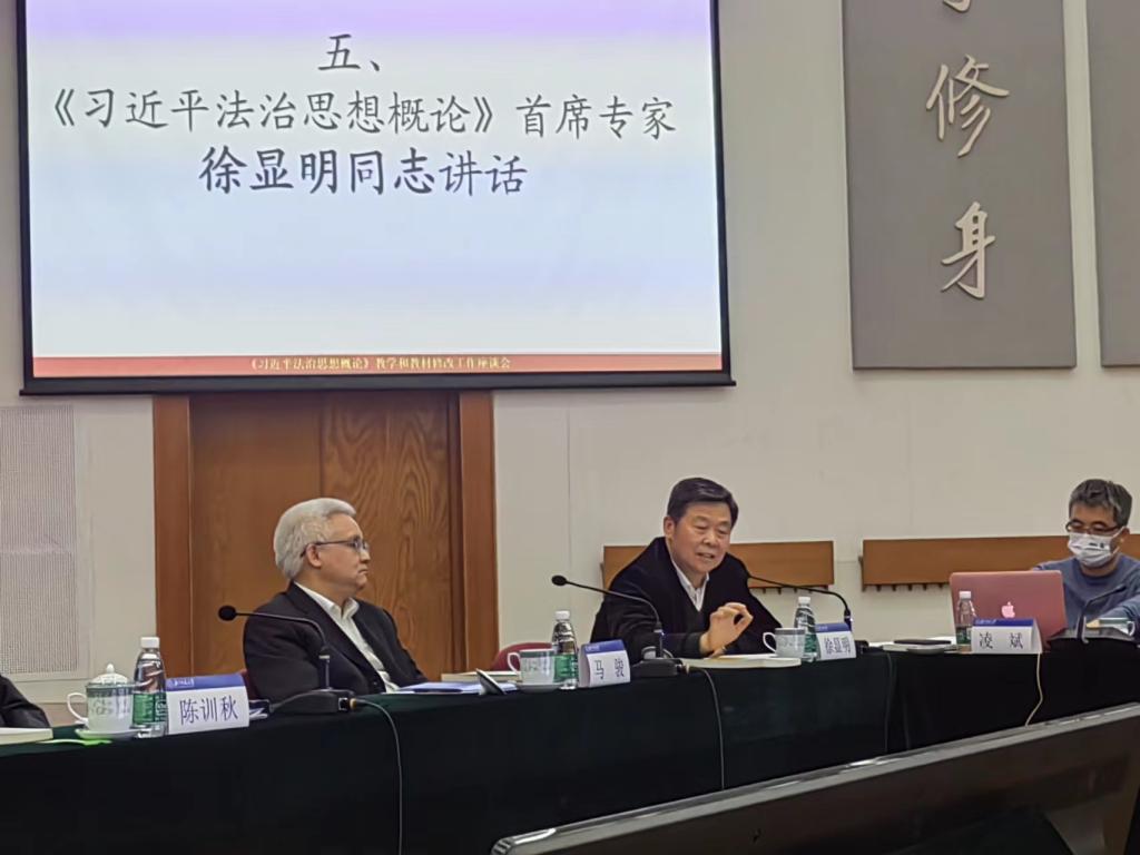 2023年3月2日,中国法学会主办的《习近平法治思想概论》教学与教材修改工作座谈会在北京师范大学举行。中国法学会党组书记、常务副会长、习近平法治思想研究中心主任陈训秋同志,全国人大监察和司法委员会副主任、《习近平法治思想概论》首席专家徐显明同志,中国法学会党组成员、学术委员会主任、《习近平法治思想概论》首席专家张文显同志,中国社会科学院学部委员、《习近平法治思想概论》首席专家李林教授,《中国法学》总编辑、中国人民大学久久国产精品无码一级毛片院长黄文艺教授及来自教育部、首都部分高校久久国产精品无码一级毛片系的专家出席会议。我院院长米良教授出席会议。