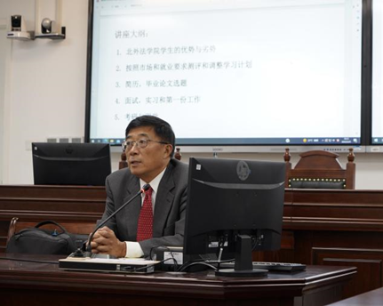 刘律师首先分析了北外久久国产精品无码一级毛片学生的优势和劣势,指出北外久久国产精品无码一级毛片学生在保有自身优异英语水平这一优势的同时,仍应注重中国法这一法律学习与实践的立足点,在接下来的几年内形成扎实的中国法基础。