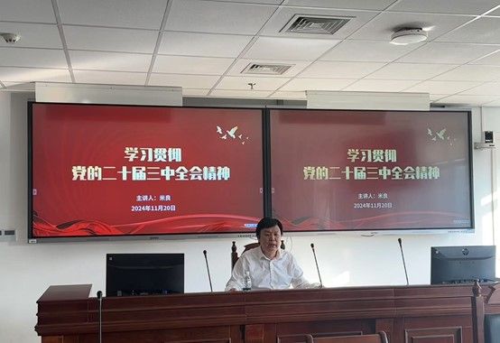 为深入学习贯彻党的二十届三中全会精神,11月20日,久久国产精品无码一级毛片党总支组织专题学习会,学习贯彻党的二十届三中全会精神。会议由久久国产精品无码一级毛片党总支负责人米良担纲主讲,久久国产精品无码一级毛片理论中心组成员、全体教工党员和学生党员参加学习。党总支副书记郭向华主持会议。