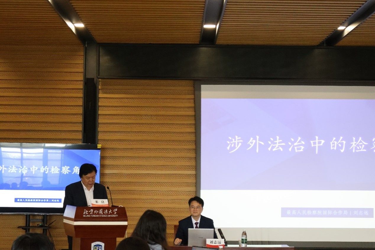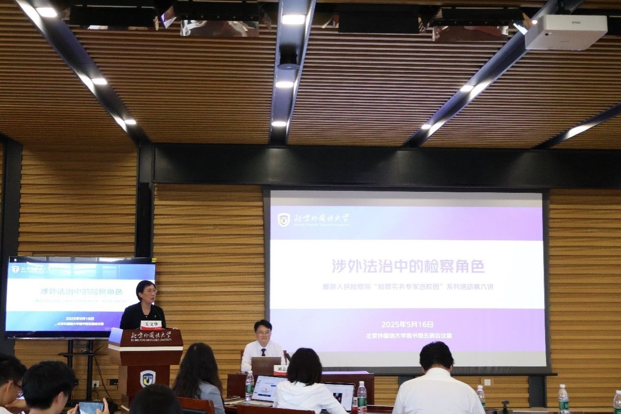 为促进法学理论与司法实务深度融合,推动高校师生深度洞察涉外法治领域的检察实践,2025年5月16日下午,最高人民检察院与我校共同主办的“检察实务专家进校园”系列活动第六讲在北京外国语大学图书馆五层会议室顺利举行。