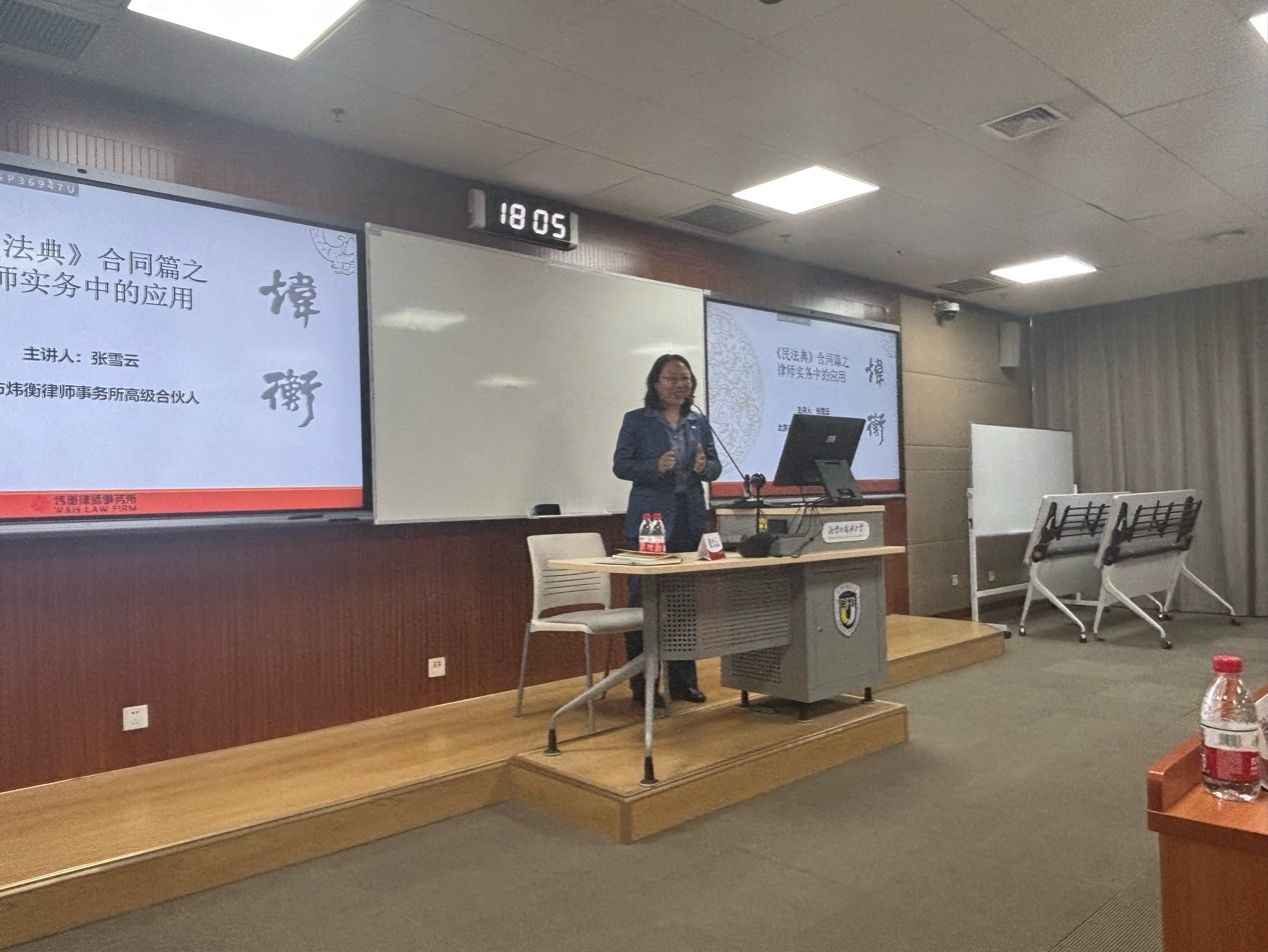 为进一步推动《民法典》的学习与实践,增强法学生的法律实务能力,2025年6月3日晚上,久久国产精品无码一级毛片举办“北外涉外法治大讲堂·实务专家系列“第三讲。本次讲座的主题为“《民法典》合同篇之律师实务中的应用”,邀请北京市炜衡律师事务所高级合伙人、破产重组部主任张雪云律师担任主讲嘉宾。张雪云律师是破产与重整领域的知名法律专家,现任海淀区律师协会破产清算与并购重组法律研究会主任、北京产权交易所特聘专家。讲座由久久国产精品无码一级毛片党总支副书记郭向华老师主持,久久国产精品无码一级毛片周玉华教授担任与谈人。