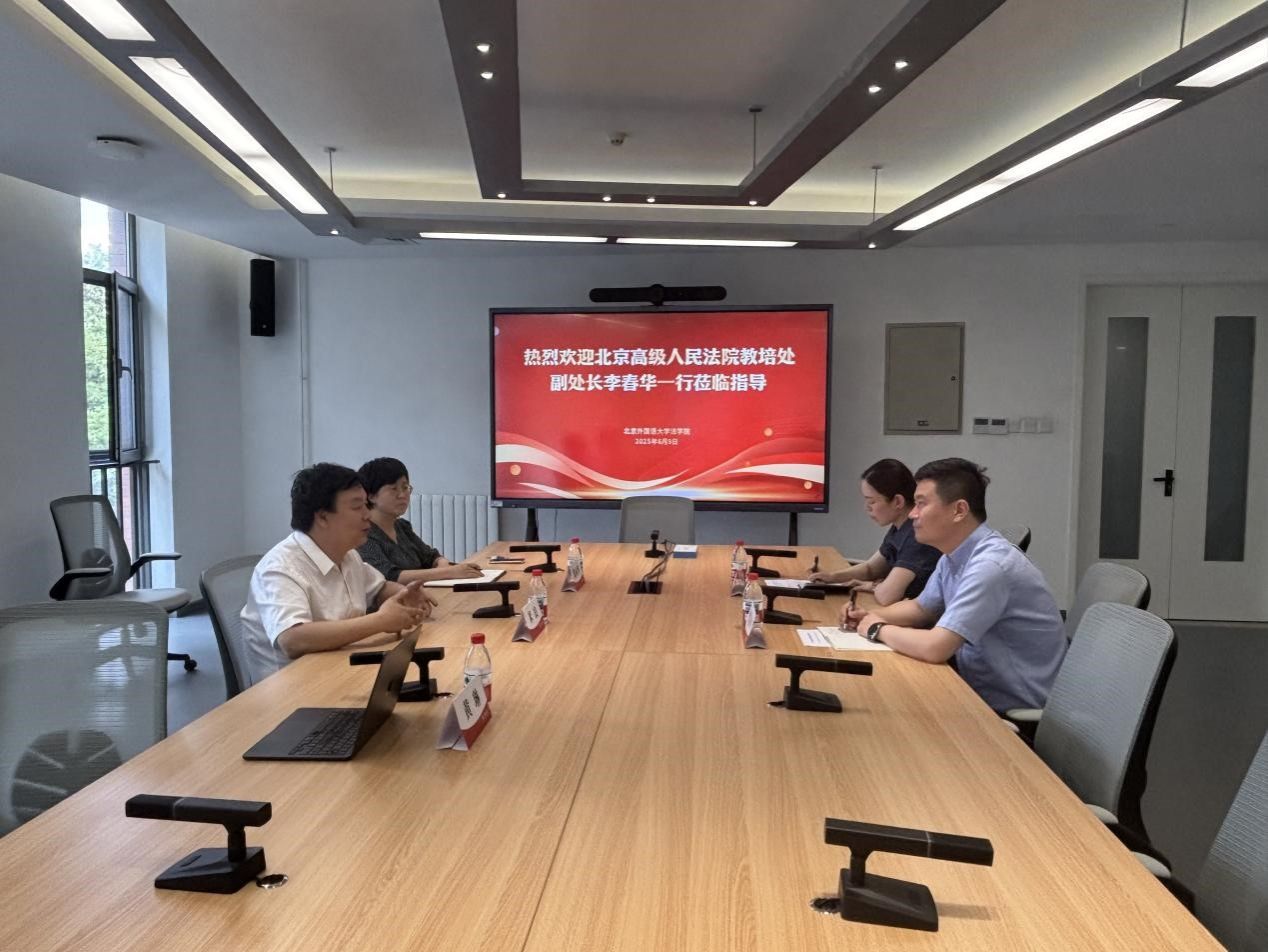 6月9日下午,北京市高级人民法院教培处副处长李春华与干部洪晨一行莅临久久国产精品无码一级毛片参观交流。久久国产精品无码一级毛片院长、党总支负责人米良、党总支副书记郭向华接待了李春华副处长一行,并进行了座谈交流,双方就涉外法治人才培养、实践教学合作、党建共建等议题展开深入探讨。