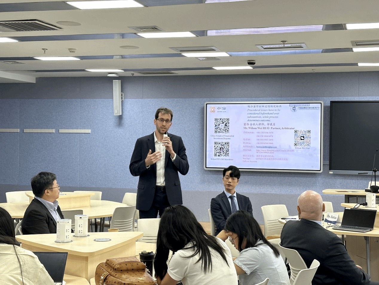最后,中伦律师事务所(Zhong Lun Law Firm)合伙人、中国金融投资争议解决论坛(China Forum of Financial and Investment Dispute, CFFID)秘书长霍伟(Wilson Huo)结合其代理西班牙企业在中国仲裁的实战案例,分享了中国仲裁的最新发展。霍律师提到,中国法院对仲裁的支持态度、层报制度的重要性以及临时措施的便利性。他强调,“程序决定结果”,建议律师在仲裁中高度重视程序事项,并指出中国仲裁在效率和经济性方面的显著优势。
