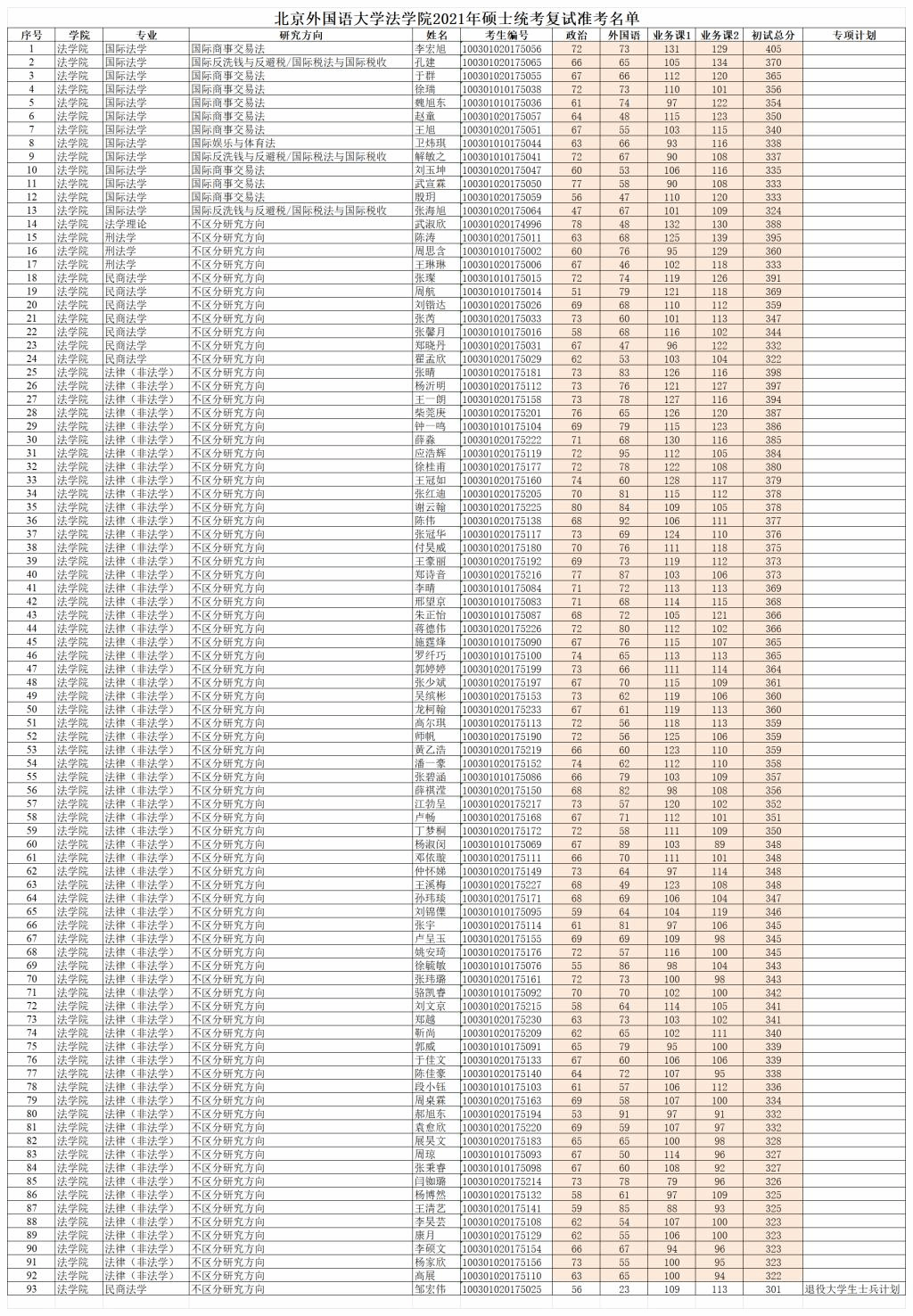 北京外国语大学久久国产精品无码一级毛片2021年硕士统考复试准考名单