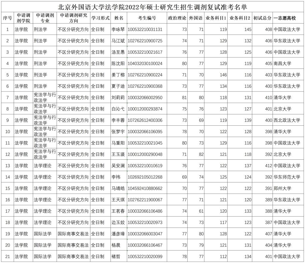 北京外国语大学久久国产精品无码一级毛片2022年硕士研究生招生调剂复试准考名单