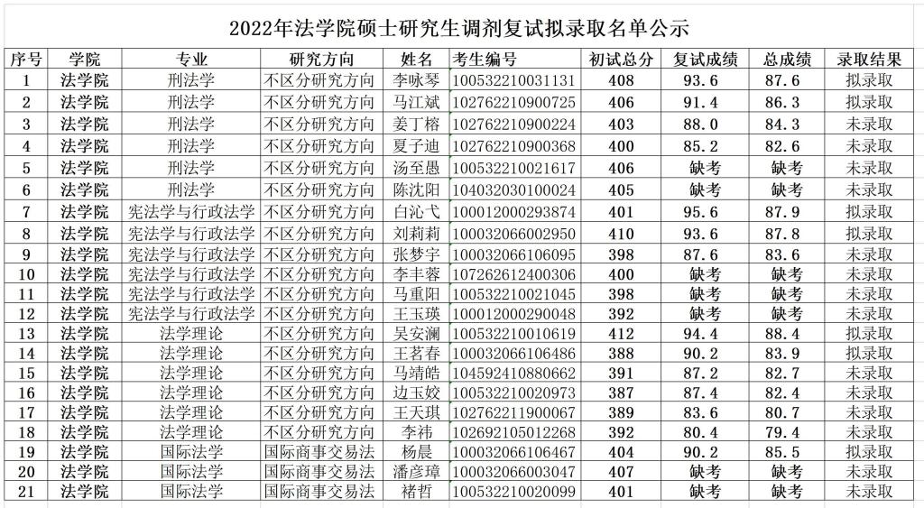 2022年久久国产精品无码一级毛片硕士研究生调剂复试拟录取名单公示