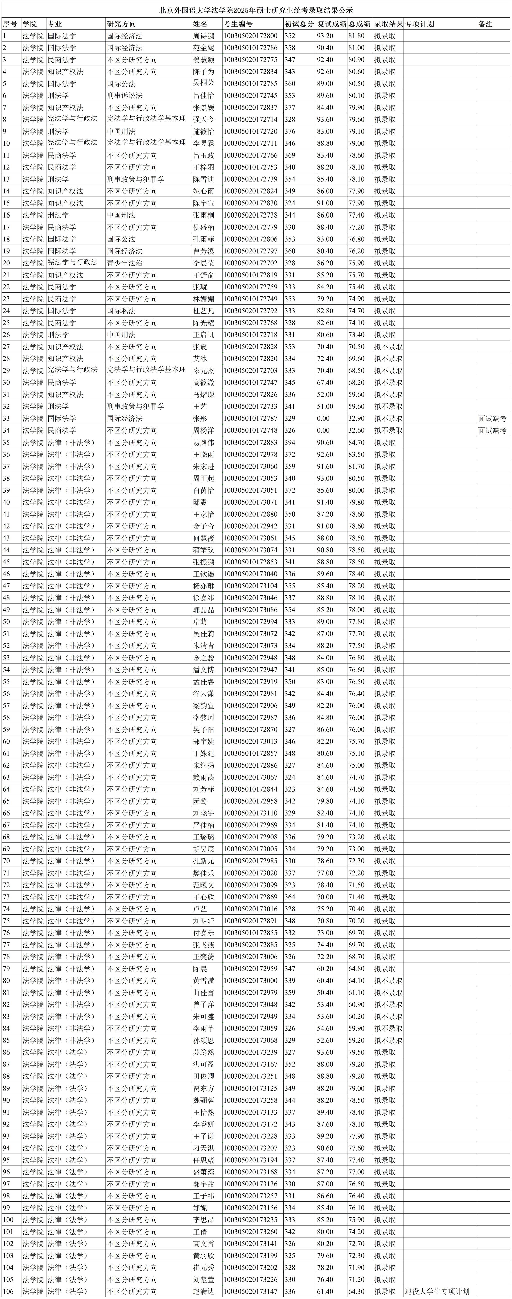 北京外国语大学久久国产精品无码一级毛片2025年硕士研究生统考录取结果公示